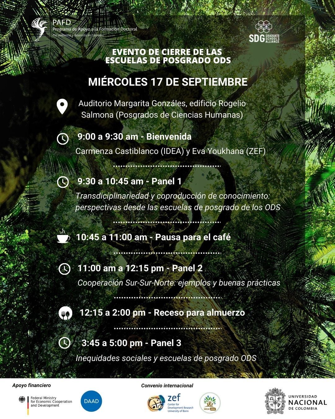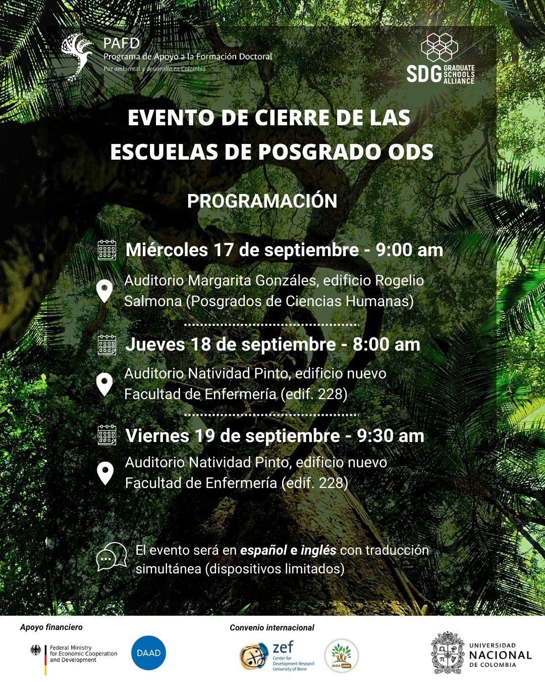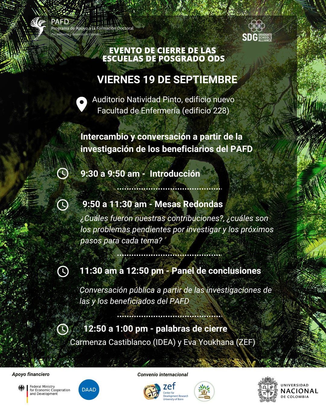 💡El evento contará con la presentación de resultados del Programa de Apoyo a la Formación Doctoral (PAFD), liderado por el Instituto de Estudios Ambientales (IDEA-sede Bogotá) de la UNAL y por el Centro de Investigaciones para el Desarrollo (ZEF) de la Universidad de Bonn.